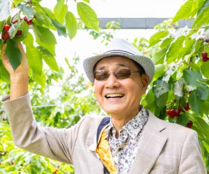 代表取締役会長 渡辺喜久男といーふらん社員のさくらんぼ狩り体験