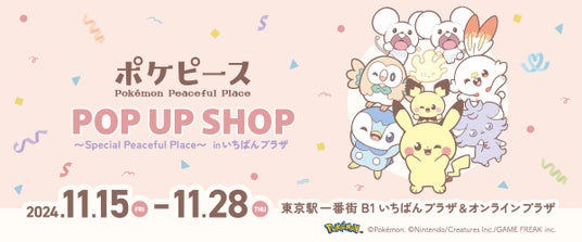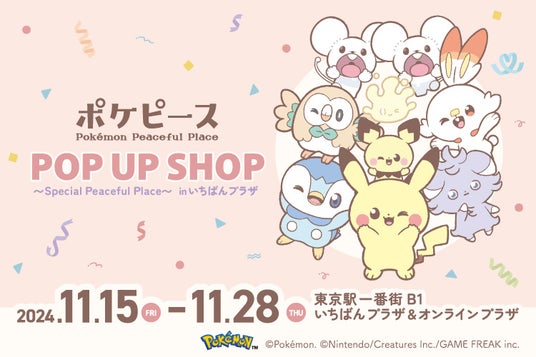 株式会社マリモクラフト(本社:東京都江東区)は、東京駅一番街 東京キャラクターストリート「いちばんプラザ」にて「ポケピース POP UP SHOP~Special Peaceful Place~ in いちばんプラザ」を2024年11月15日(金)から11月28日(木)までの期間限定でオープンします。