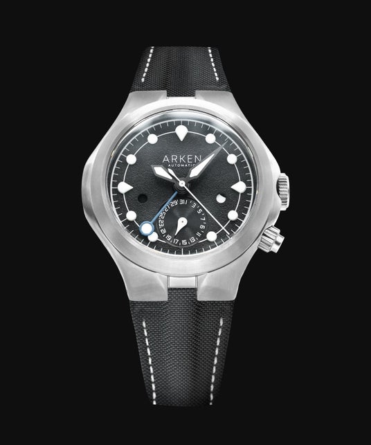 複雑なプッシュボタン操作や専用機構を必要とせず、日常使いの延長で扱える点もArkenのGMT機構の特徴です。旅先や移動中でも迷うことなく操作できる、実用性を重視した設計となっています。