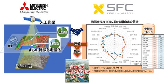 慶應義塾大学と三菱電機株式会社(以下、三菱電機)は、国立研究開発法人科学技術振興機構(以下、JST)による「共創の場形成支援プログラム(COI-NEXT)」(※1)の地域共創分野・本格型プロジェクトのひとつである「リスペクトでつながる『共生アップサイクル社会』共創拠点」(以下、本プロジェクト)(※2)において、衛星データを活用したまちづくりの共同研究を、神奈川県鎌倉市を実証フィールドとして開始します。