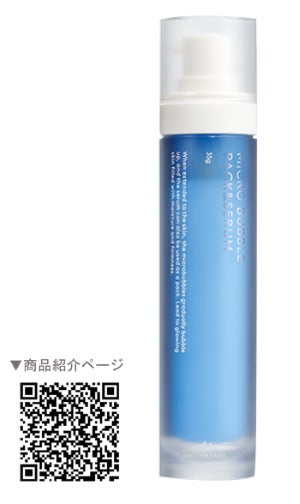 洗い流し不要でパックもできる美容液。肌に塗るとマイクロバブルがシュワシュワと弾けて、肌に浸透します。さらに、美容成分を豊富に纏った痛くない天然微細針※1が、肌の凹凸にフィットしてハリ・潤い成分を肌奥※2に届けます。