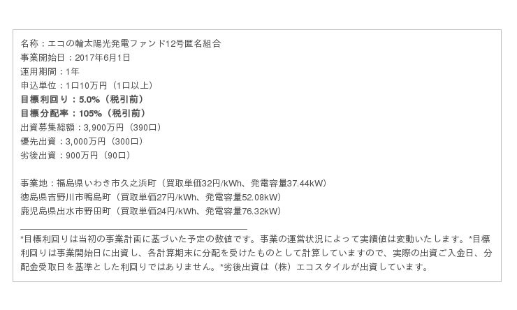 【エコの輪太陽光発電ファンド12号 概要】