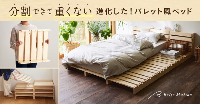 株式会社千趣会(本社:大阪市 代表取締役社長:梶原健司 以下千趣会)の通販事業ベルメゾンは、ロングセラー商品をリニューアルした新商品「簡単に組み替えができるパレット風ベッド」を12月20日(水)よりベルメゾンネットにて販売開始します。(https://www.bellemaison.jp/)
