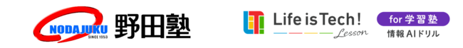 プログラミング教育サービス事業を手がけるライフイズテック株式会社(本社:東京都港区、代表取締役CEO:水野 雄介)は、2023年4月より、愛知県で創立70年を迎えた株式会社野田塾が運営する「野田塾」の全64教室へ、大学入学共通テスト・学校の定期テストにおいて「情報 I 」を対策できる、学習塾向け教材「情報AIドリル」の提供を開始します。