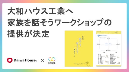 コネヒト株式会社(本社:東京都港区、代表取締役社長 杉井 信一郎、以下「コネヒト」)は「家族を話そうワークショップ」を大和ハウス工業株式会社(本社:大阪市、代表取締役社長:芳井 敬一、以下「大和ハウス工業」)に提供することが決定したことをお知らせいたします。