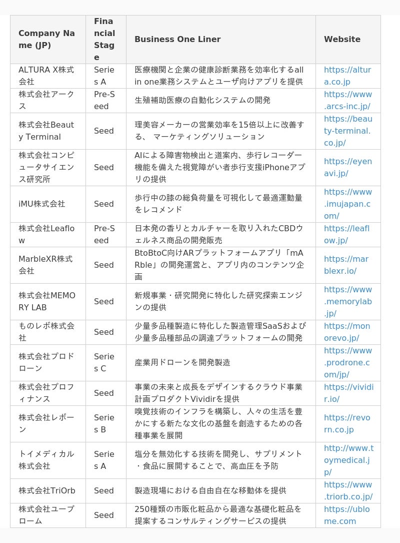 ファイナリストスタートアップ一覧(50音順)