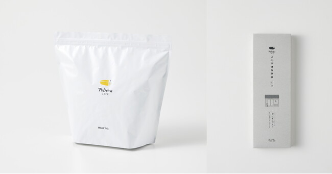 『Pelicanパン冷凍保存袋1斤』は、白をベースにした袋の片面に「ペリカンカフェ」のロゴを、反対側にはお店のイラストを配置し、シンプルであきのこないデザインにしました。ペリカンの食パン一斤がぴったり入るサイズです。パッケージは、ギフトにもおすすめの箱型の仕様にしました。
