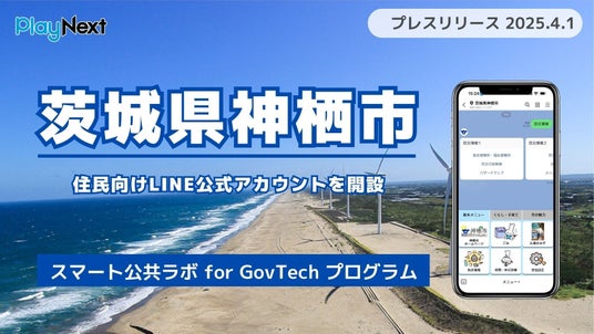 プレイネクストラボ株式会社(本社:東京都品川区、代表取締役:柏 匠、以下 「プレイネクストラボ」)の提供する「スマート公共ラボ for GovTechプログラム」が、茨城県神栖市(以下「神栖市」)のLINE公式アカウントに採用され、2025年4月1日(火曜日)より一般公開したことをお知らせします。