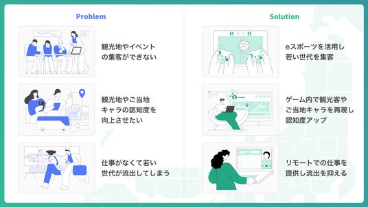 昨今、地方自治体では人口減少・高齢化により、地域づくりの担い手不足という課題に直面しています。こうした課題に対し、移住した「定住人口」でもなく、観光に来た「交流人口」でもない、地域と多様に関わる者である「関係人口」に着目し、地域外からの交流の入り口を増やすことが必要だと考えられます。※1そうした課題を解決すべく、当社が培ってきたゲームに関する豊富な経験とノウハウを活用し、地方創生を支援するための新しいサービスの提供を開始いたしました。