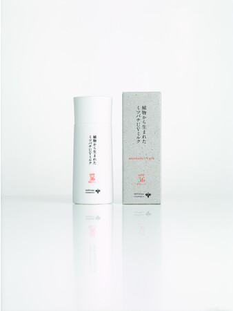 玄米にたった 0.04%しか含まれない希少なコメヌカ由来「フェルラ酸」を活かすことで、化学合成の紫外線吸収剤はもちろん、天然ミネラルの紫外線散乱剤すらも配合しない、ノンケミカルをさらに一歩進める日本初(※)の日やけ止めを完成させることができました。このミツバチUVミルクは、植物の力のみでの紫外線カットの限界SPF10を大きく超えるSPF36を実現し、さらにエッセンスミルクのような心地良い使いごこちを実現することができました。