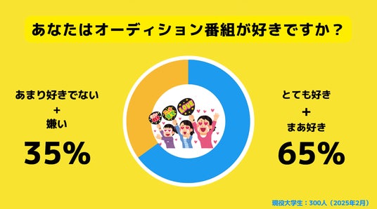 ■現役大学生の65%がオーディション番組を好きだと回答