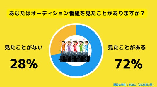 72%の現役大学生がオーディション番組を見たことがあると回答。