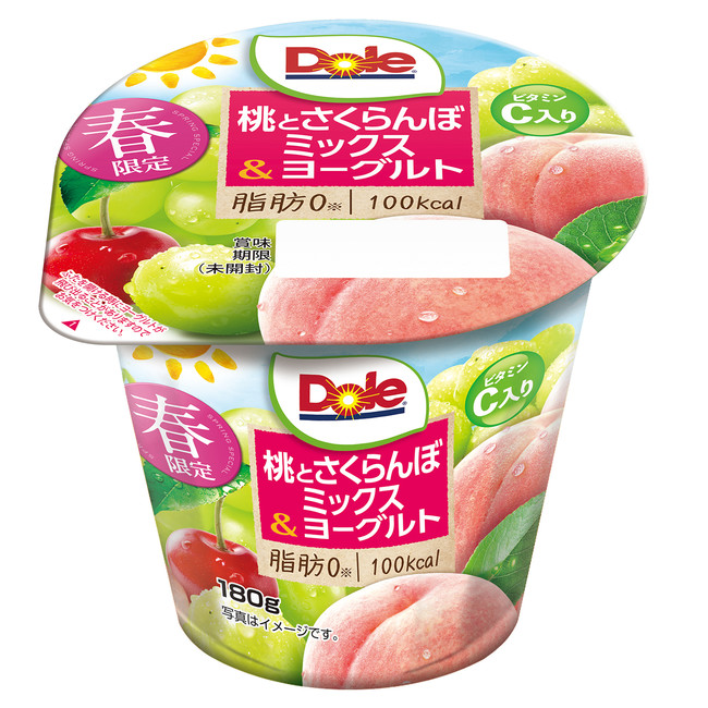 日々の朝食替わりやお食事後のデザートに、手軽においしくフルーツとヨーグルトが摂取できる春限定の「Dole(R)桃とさくらんぼミックス&ヨーグルト」をぜひお召し上がりください。