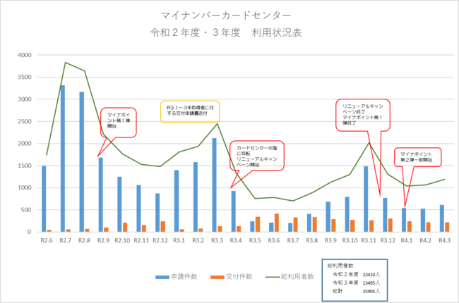▶職員が申請受付。独自の出前申請を実施(令和4年4月までの累計)