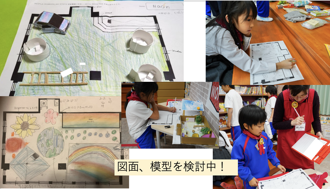 プレゼン発表会は、子どもたちがつくった設計図~模型を展示。子どもたちが一人一人プレゼンをし、一つの空間に集約するためのヒントや改善点を見つけることを目的に開催されます。