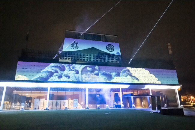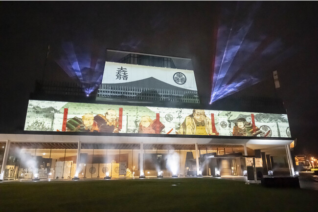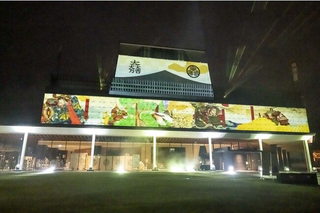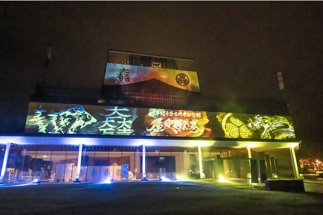 大河ドラマ「どうする家康」で注目される岐阜関ケ原古戦場記念館の建物に、「関ヶ原合戦図屏風」や「徳川二十将図」が躍動するデジタルアニメーションなどデジタル技術を駆使した幻想的な歴史絵巻を投影。