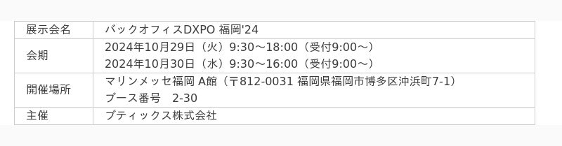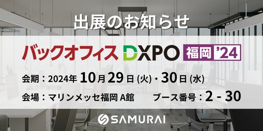 プログラミングスクール「SAMURAI ENGINEER(侍エンジニア)」を運営する株式会社SAMURAIは、2024年10月29日(火)、10日(水)にマリンメッセ福岡で開催される『バックオフィスDXPO福岡'24』に出展いたします。