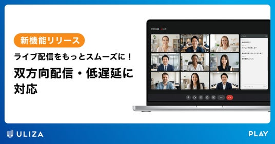 法人向け動画配信プラットフォーム「ULIZA(ウリザ)」を提供している株式会社PLAY(本社:東京都渋谷区、代表取締役社長:黒田和道)は、WebRTC(Web Real-Time Communication)を活用した低遅延・双方向ライブ配信機能を新たに開発したことをお知らせします。