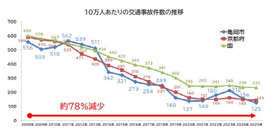 京都府亀岡市の2025年の交通事故発生件数が過去最少を記録