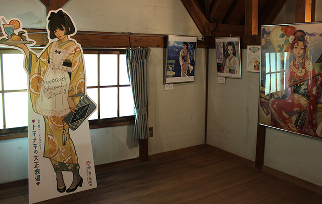 受賞を祝し、夢二生家記念館・少年山荘にて当館企画展のために描き下ろされた作品を中心にサイン入り等身大パネルなども展示いたします。