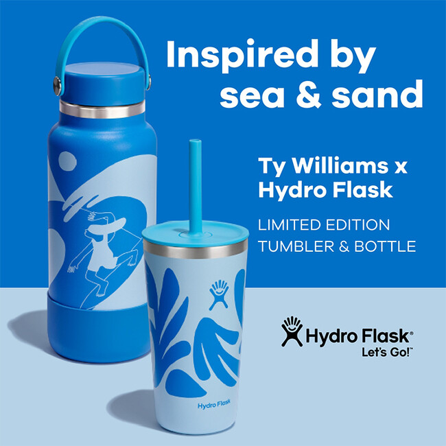 アメリカの断熱ステンレスボトルブランド・Hydro Flask(R)より、限定ボトル&タンブラーが登場!NYブルックリンを拠点とするアーティスト・Ty Williams(タイ・ウィリアムズ)が、海や自然の中で過ごす時の心地良さをインスピレーションにデザイン。IceとLapisという爽やかなカラーをベースに、遊び心のあるボタニカル&サーフデザインが皆さんの毎日を彩るでしょう!ボトルにはデザインにマッチするブート(シリコン製のパーツ)、タンブラーには快適な水分補給をサポートしてくれるストローキャップ付き。どちらも数量限定での発売となります。