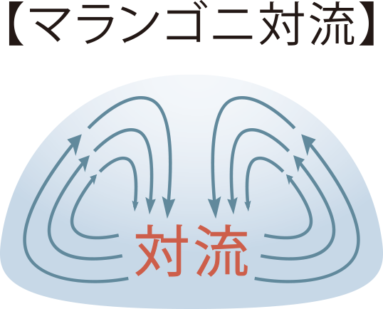 表面張力や界面張力によって、自然に対流が発生するマランゴニ対流。