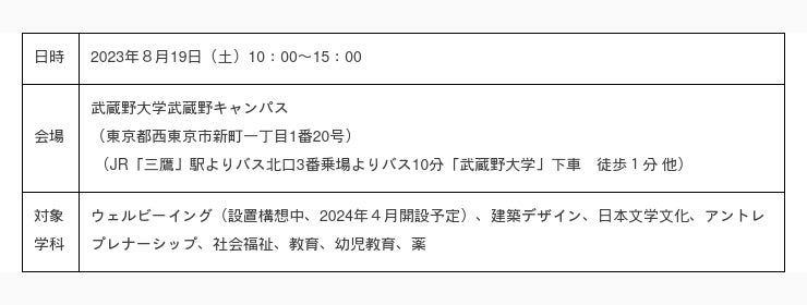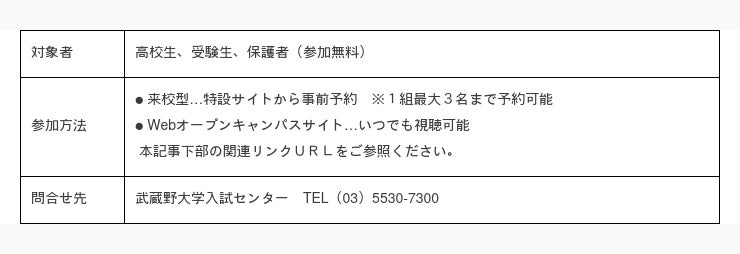 ■オープンキャンパス特設サイト:https://www.musashino-u.ac.jp/admission/faculty/event/oc/