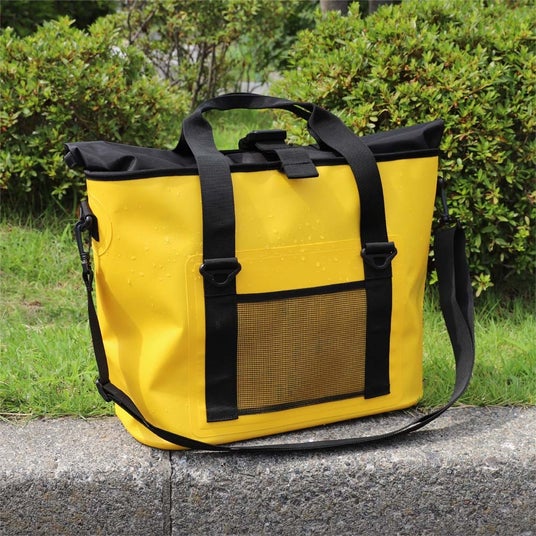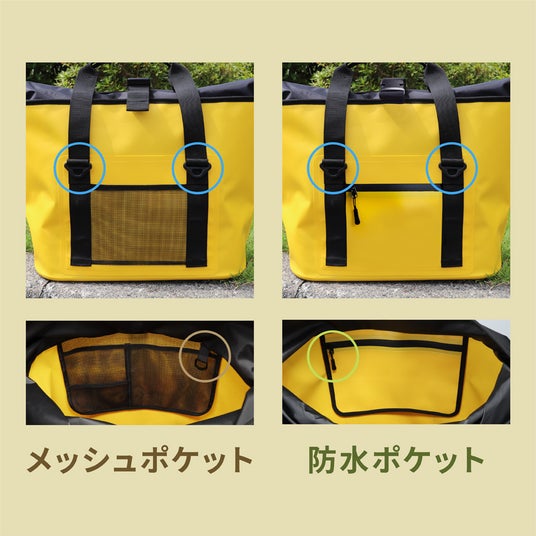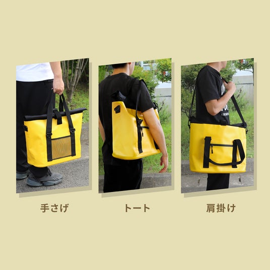 軽い雨などから手荷物を守る大容量の防水バッグです。山や海などのアクティビティ、釣りやゴルフなどの野外スポーツはもちろん、ジムやサウナ・温泉など濡れた荷物入れとしても活躍します。