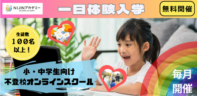日本中の学校をハッピーにする株式会社NIJIN(本社:東京都江東区、代表取締役:星野達郎)が運営する小中学生向けオルタナティブスクール「NIJINアカデミー」は、5/13(月)~無料相談を開始します。