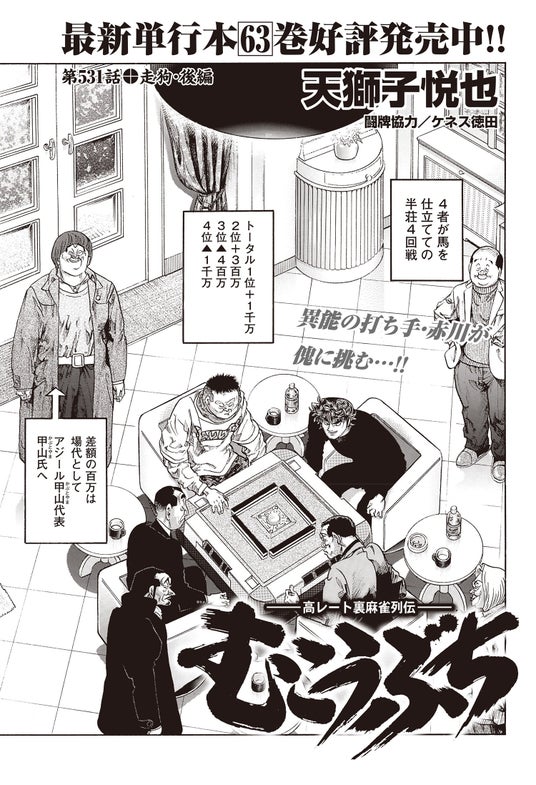 近代麻雀:毎月1日発売の麻雀漫画専門誌。『老境博徒伝SOGA』、『むこうぶち』とスピンオフ作品『お疲れ様です後堂さん』、『ピークアウト』、『追憶のM Mたちの人生を紐解く』など麻雀好きの心を熱くする漫画多数連載。さらに佐々木寿人、小林剛などMリーガーのコラム多数連載中。