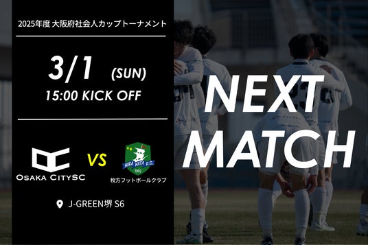 Osaka City SCは、大阪府社会人カップトーナメント4回戦において、枚方フットボールクラブと対戦いたします。