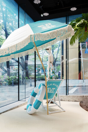 期間中は、コレクションのテーマでもある”SPLASH”や”BEACH”を表現した「マックスマーラ ビーチ」をガラスウィンドーに再現。ブランド公式LINEアカウントでは、イニシャル入りのオリジナルパスポートの作成が可能、新作アイテムの中から旅のデスティネーションに合わせたワードローブを提案します。