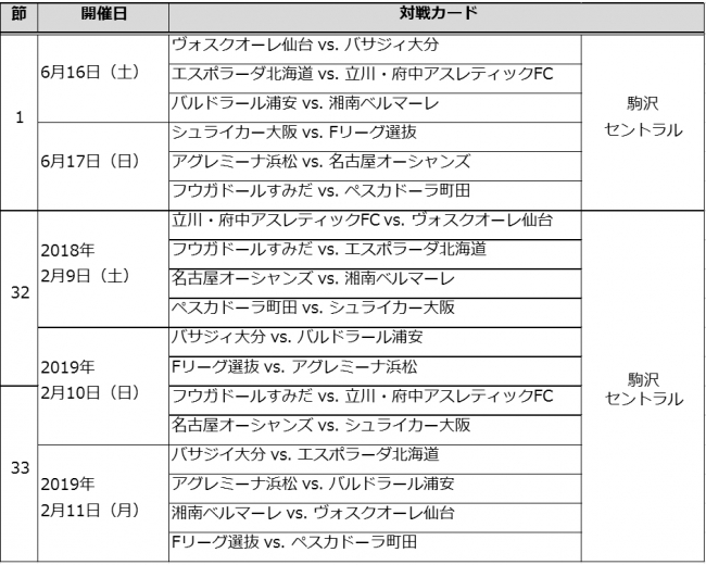 <フットサル DUARIG Fリーグ 2018/2019 開幕節 放送予定> ※全試合再放送あり