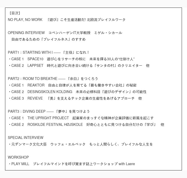 「NO PLAY, NO WORK 『遊び』こそ生産活動だ! 北欧流プレイフルワーク」