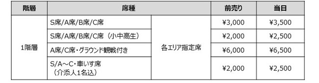 ・ご購入いただいたチケット券面に記載の指定エリアでの観戦のみとさせていただきます。