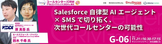 SupershipとKDDIが共同運営する法人向けメッセージ配信サービス「KDDI Message Cast」( https://sms.supership.jp/ )は、2024年11月21日(木)・22日(金)に開催される「コールセンター/CRM デモ&コンファレンス 2024 in 東京(第25回)」に出展し、株式会社セールスフォース・ジャパンと共同でセミナーを開催いたします。