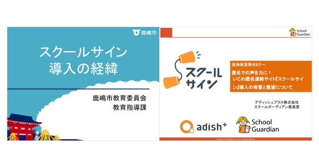 デジタルエコノミー特化のカスタマーサクセスソリューション・プロバイダーであるアディッシュ株式会社(本社:東京都品川区、代表取締役 江戸 浩樹、東証コード:7093、以下 アディッシュ)の子会社であるアディッシュプラス株式会社(本社:沖縄県那覇市、代表取締役 石川 琢磨、以下 アディッシュプラス)は、2023年度下期に鹿嶋市による「令和5年度いじめ匿名連絡サイト業務委託」を受託し、アディッシュグループのサービス「スクールサイン」の提供を開始しました。