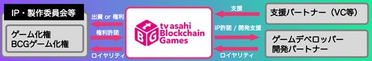 『tv asahi Blockchain Games』プロジェクトは、Web3領域において、音楽や映像などのIPを保有するライセンサーまたはアニメ製作委員会とゲームデベロッパーやWeb3マーケティング事業者と共に、ゲームインキュベートからゲームパブリッシング・コミュニティマーケティングからトークン支援までハンズオン型の国内初の「ブロックチェーンゲームアクセラレータプログラム」です。