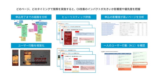 航空券予約領域では、サイト上での顧客行動分析に注力しています。コンタクトセンターの入電状況やアンケート調査から得られた声を生成AIで分析し、ヒートマップとして可視化を試みています。また、N1分析手法で顧客のサイト内行動を分析し、つまずきポイントを特定することで、これまで気づかなかった課題の関連性を明らかにしています。