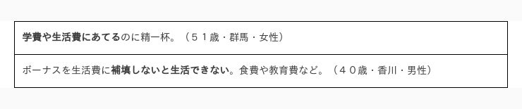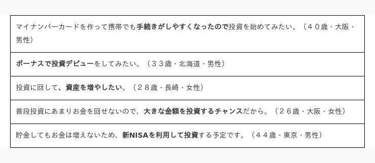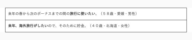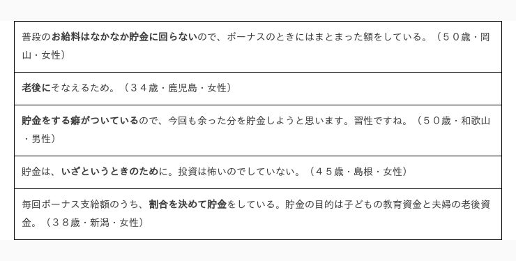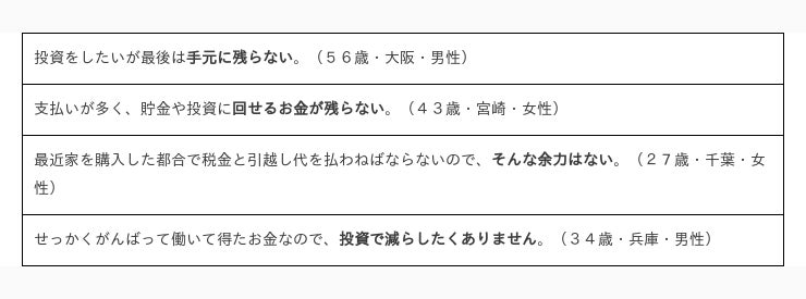 ボーナスでは「貯金・投資」はしない人理由を聞いてみると、「じつは貯金や投資をしたいけれど…」という本音が見え隠れしました。