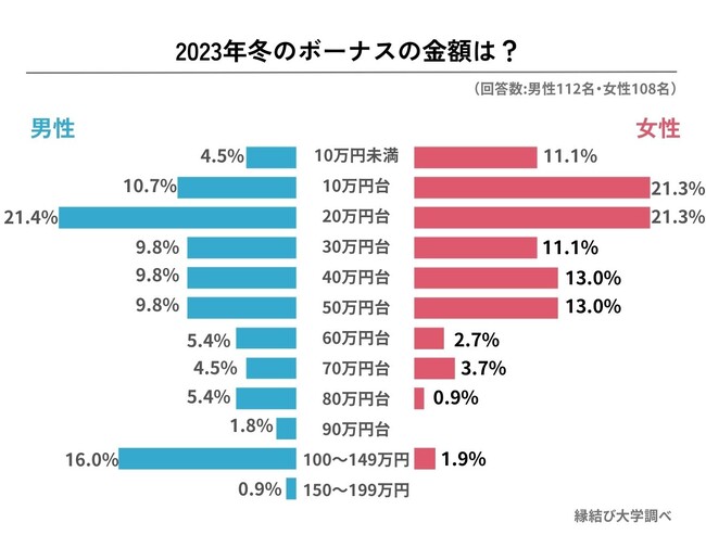 今年もボーナスのシーズンが到来しました。そこで株式会社ネクストレベル(本社所在地:神奈川県横浜市、代表取締役:田中大洋)が運営する『縁結び大学(https://jsbs2012.jp/date/)』では、「冬のボーナスがもらえる」という男女220人に、今年のボーナスの金額や使い道を聞いてみました。