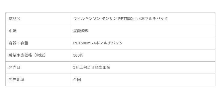 「ウィルキンソン タンサン」PET500ml×4本マルチパック