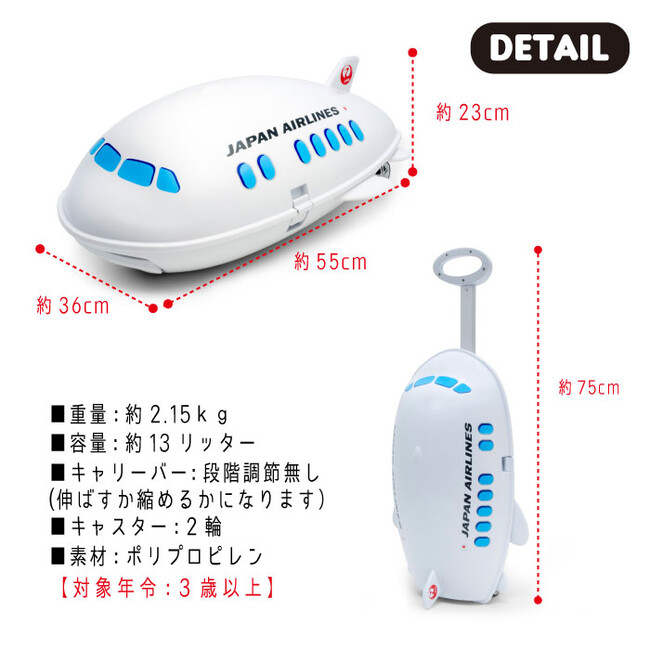 JAL飛行機型キャリーケースはJALのオフィシャルライセンス商品です。