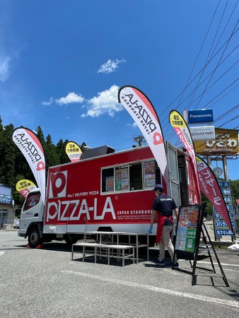 プールWAI内にピザーラのキッチンカーが登場し、ピザーラで人気のピザやサイドメニュー、ドリンクなどを販売。焼きたてのピザをプールWAIでお楽しみいただけます。