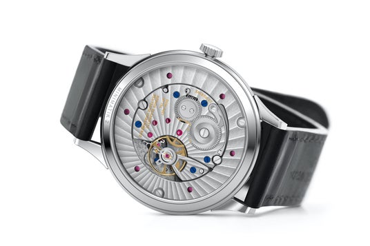 「ミニマティック 39 デイト」の内部では、優美な日付機能付き手巻き式ムーブメント「DUW 4601」が時を刻みます。 絢爛なポリッシュを特徴とする「DUW 4601」は、精緻な太陽光のような仕上げが日付リングのプレートの端まで伸びており、大型のサファイアクリスタルのケースバックを通して見ることができます。特許取得済の日付機構とすばやく変更できる便利な日付機能を備えた革新的なキャリバーは、高精度で時を刻み52時間のパワーリザーブを誇ります。