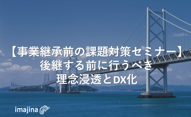 今回のセミナーでは、なぜDX化が必要であるのか、事業継承のために必要な理念浸透とはどういった方法で行っていくべきかについて詳しくお伝えいたします。