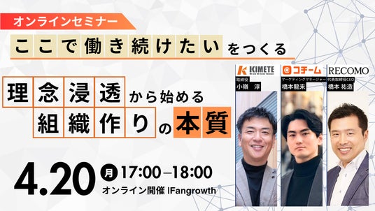 2026年4月20日(月)、株式会社武蔵野と株式会社RECOMO(本社:東京都世田谷区、代表取締役:橋本 祐造)・株式会社オー(本社:東京都中野区、代表取締役:谷本潤哉)の合同セミナーが決定しました。