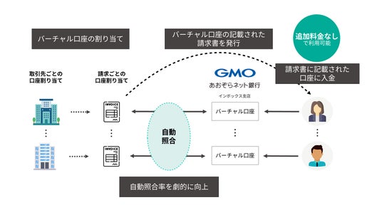こうした背景から、「invox発行請求書」は入金消込の自動照合率向上と作業効率化を一層推進するため、GMOあおぞらネット銀行が提供するバーチャル口座を活用した入金消込機能の提供を開始しました。