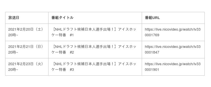 ニコニコ生放送にてNHLドラフト候補に挙がった注目の日本人選手「安藤優作選手」や「磯谷建汰選手」が所属する、米国ジュニア最高峰リーグ「USHL」のヤングスタウン・ファントムズの試合を実況&解説付きで放送します。