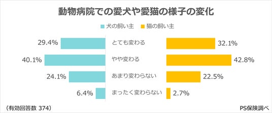 ※以下の集計では、動物病院での愛犬や愛猫の様子の変化で「まったく変わらない」を選択した回答者を対象外としています。